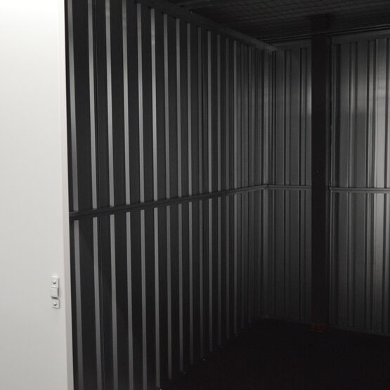 Opbevaringsboks på 6,9 m2 og 2,3 m til loftet til sikker opbevaring af dine ejendele med dobbeltdør. Den er opvarmet og med gulvtæppe. Boksen kan aflåses med hængelås.